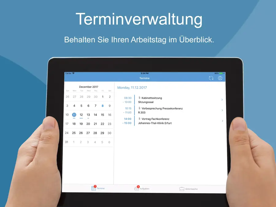 Mit dem VIS-MobileClient wird die Arbeit effektiver, weil die Anwenderin/ der Anwender auf der Dienstreisen, bei einem Vororttermin oder im Home-Office auf benötigte Akten schnell mobil zugegreifen kann. Mit dem MobileClient stehen ihm alle erforderlichen Dokumente auf dem Laptop oder Tablet zur Verfügung. Außerdem lassen sich von unterwegs Prozesse der Vorgangsbearbeitung anstoßen und persönliche Termine verwalten.